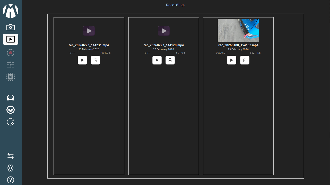 3. Video Record : The Video Recording interface allows users to capture and save processed footage from either live camera feeds or media sources.
