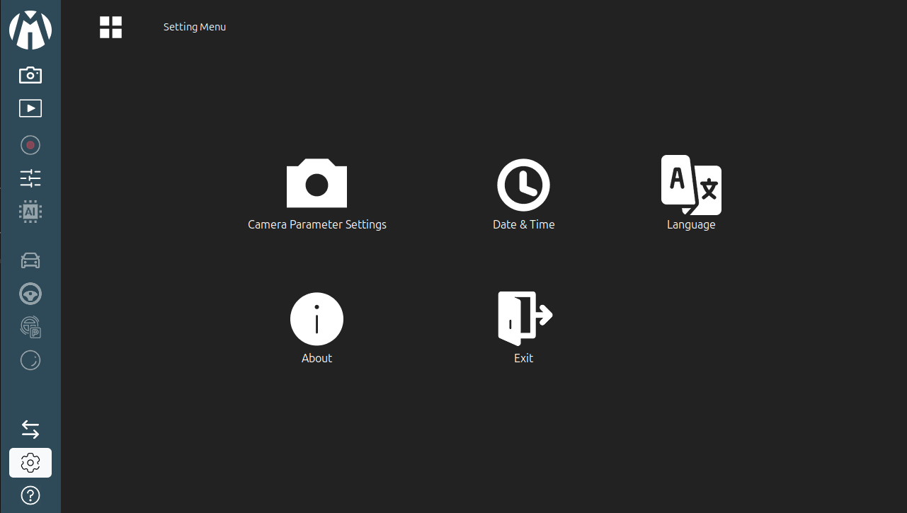5. AI Mode : AI Detection Mode Click the chip icon on the sidebar to activate AI Mode. This feature uses deep learning to detect obstacles like pedestrians and vehicles in real-time, highlighting them with bounding boxes on the screen to enhance driver awareness.