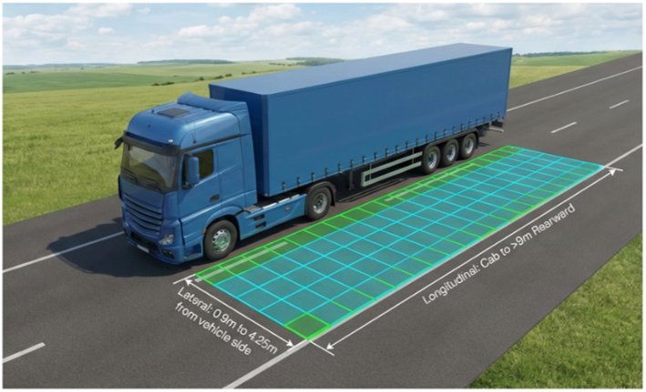 - Mechanism: Actively monitors the passenger-side blind spot to detect cyclists and pedestrians during turning maneuvers.