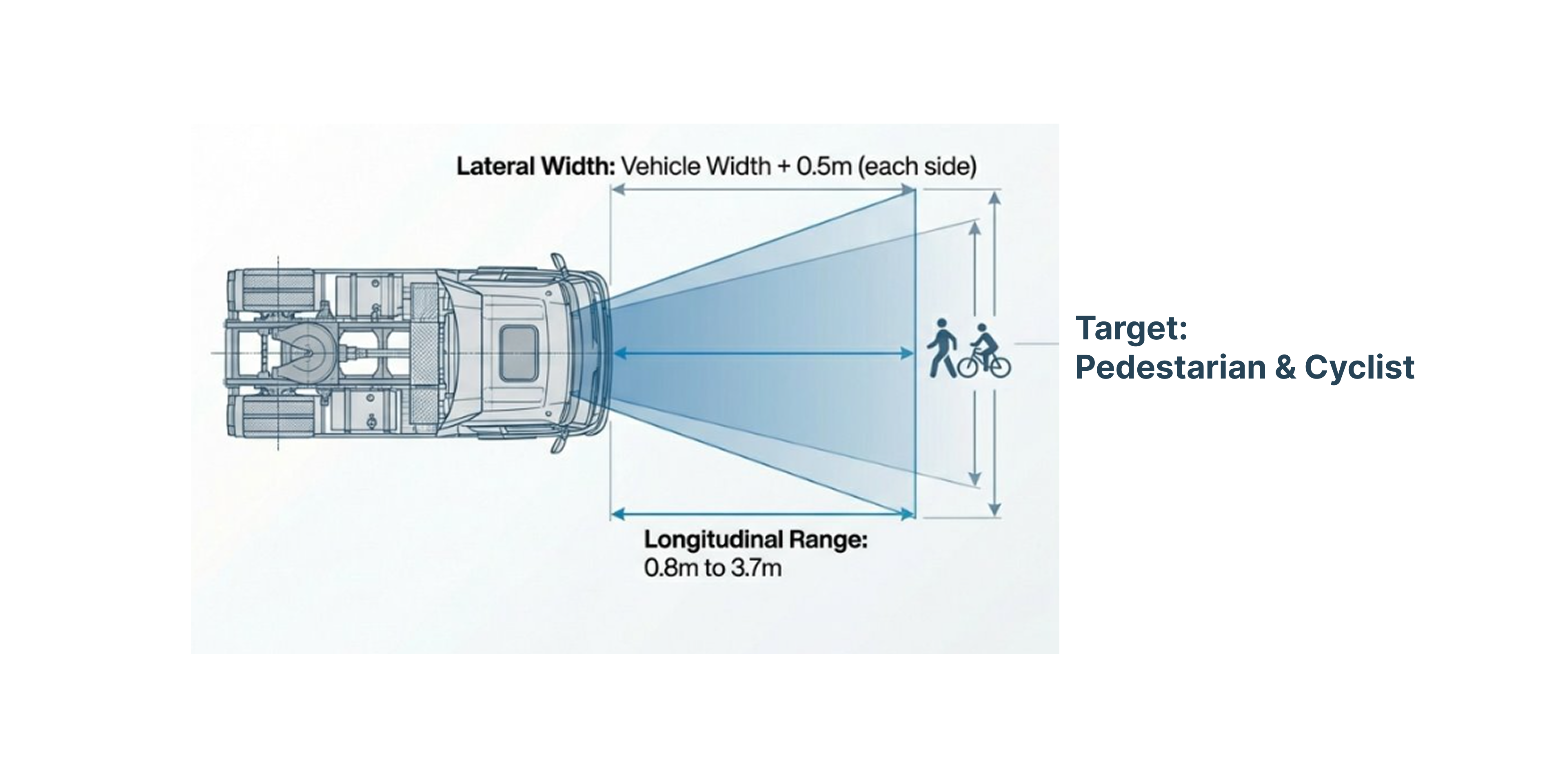 - Mechanism: Detects VRUs in the immediate proximity of the front of the vehicle before or during a slow move-off from a stationary position.